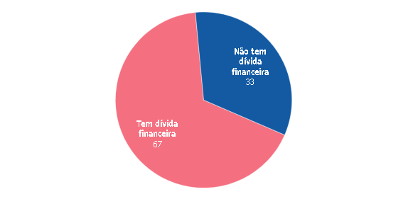 Os dados também mostram que um a cada cinco brasileiros (21%) diz estar com dívidas financeiras atrasadas. Entre quem pegou dinheiro emprestado de amigos e familiares, 41% estão devendo. A inadimplência no cartão de crédito parcelado foi citada por 29% de quem tem essa dívida, seguida por empréstimos em banco (26%) e carnês de lojas (25%).