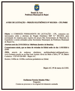 Aviso de Licitação (PREGÃO ELETRÔNICO Nº 4/2026)