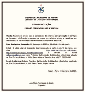 Pregão Eletrônico SRP no 02/2026 AVISO DE LICITAÇÃO