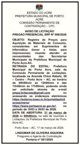Aviso de Licitação Pregão Eletrônico SRP nº 30 2025 – Alimentação Alto Acre