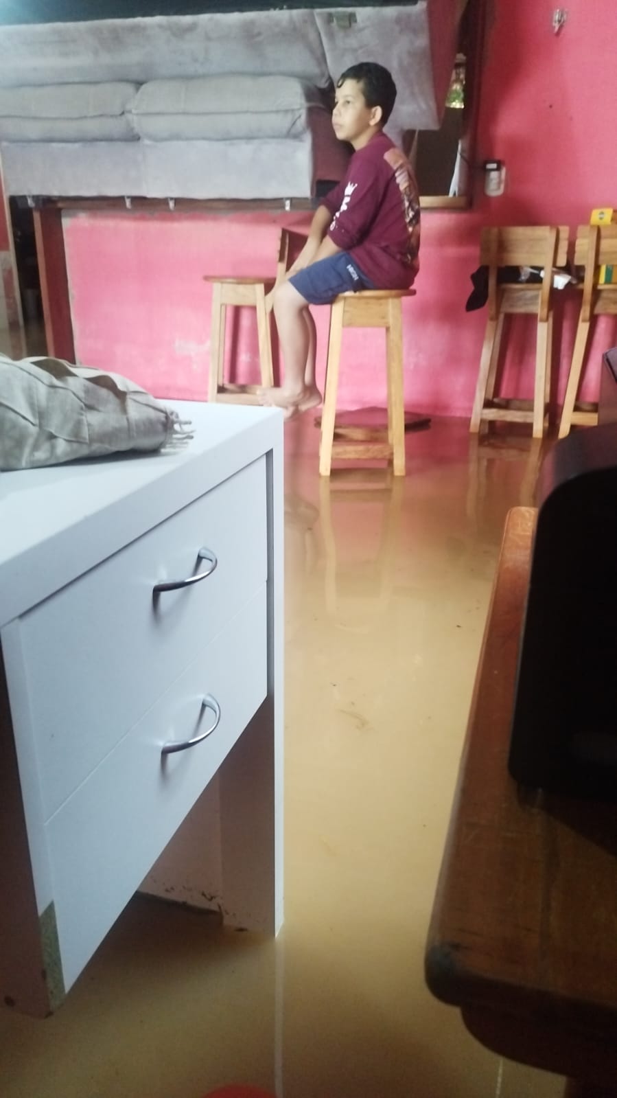 Imagens enviadas por moradores mostram vias completamente submersas e o desespero de famílias que viram a água invadir quintais e residências em poucos minutos.