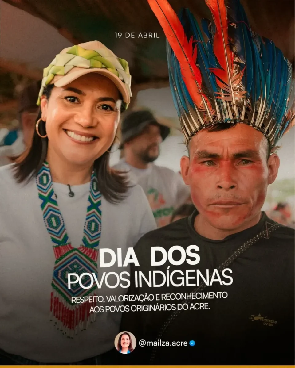 “Neste Dia dos Povos Indígenas, celebramos a diversidade cultural, a história, a sabedoria e a luta dos povos originários do nosso Acre e do Brasil”, declarou Mailza.