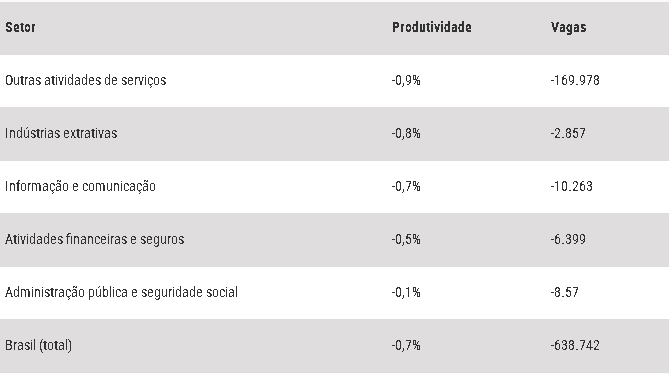 Nos três setores, a perda de produtividade seria de 1,3%, o que acarretaria no fechamento de 1,6% dos postos de trabalho