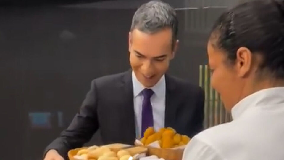 Cesar Tralli foi surpreendido com um presente especial de Ana Maria Braga após participar ao vivo do Mais Você nesta quinta-feira (30). O jornalista recebeu coxinhas e pães de queijo das mãos de Maria, assistente de cozinha do programa. “Que despedida mais saborosa! Muito obrigado de coração!”, escreveu Tralli ao compartilhar o vídeo do momento.