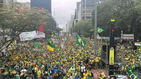 Ato bolsonarista em SP tem bandeira gigante dos EUA e pedido por anistia