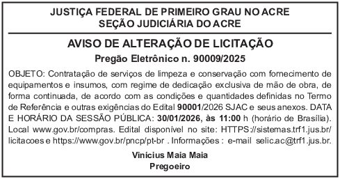 Aviso de Alteração de Licitação (PREGÃO ELETRÔNICO n. 90009/2025)