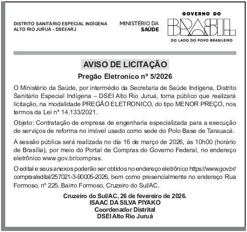 Pregão Eletrônico no 02/2026 AVISO DE PRORROGAÇÃO