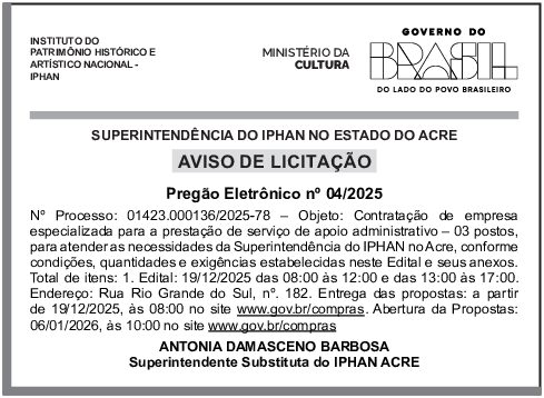 Aviso de Licitação – Pregão nº 04/2025 AC