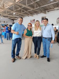 Secretário Tony Rock ladeado por está colunista, a presidente do PL Mulher no Acre, Charlene Lima e o vereador, Samir Bestene.