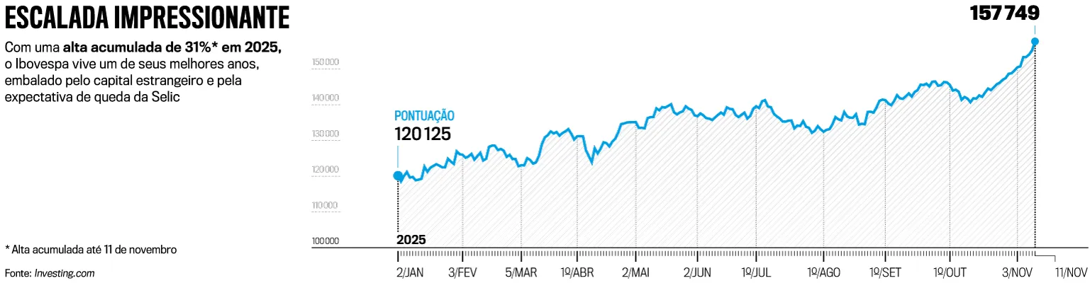 25 bilhões de reais na bolsa no ano. Não é que o Brasil tenha se tornado