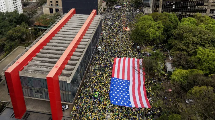 Bolsonaristas expõem bandeira dos EUA em ato na Paulista