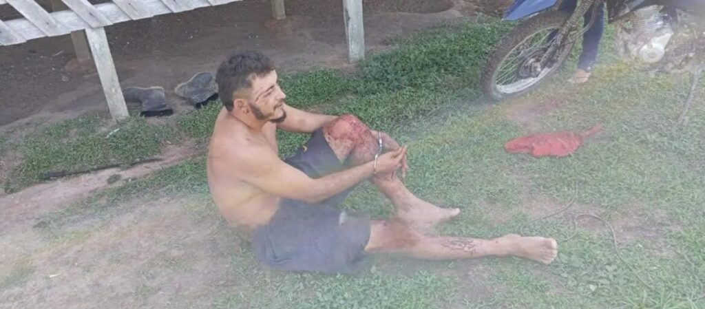 Familiares que estavam presentes conseguiram conter o tio, Marcos Silva Santos, mas ele conseguiu escapar em seguida, fugindo pela mata nas proximidades da fazenda.