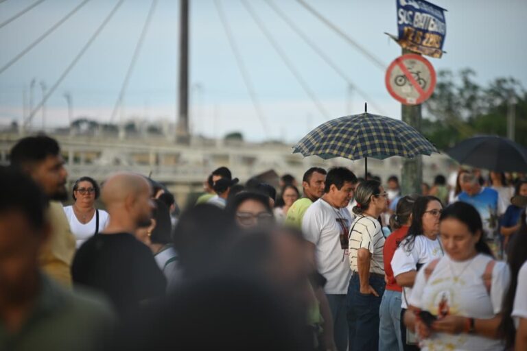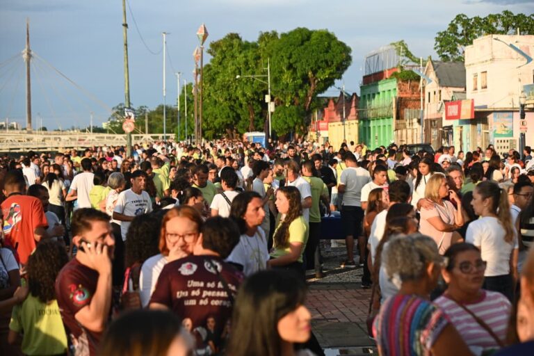 A movimentação intensa na Gameleira, um dos pontos mais icônicos da capital acreana, se dá enquanto os participantes aguardam o encontro das imagens e o início da grande procissão.