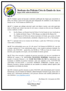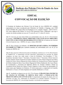 CONVOCAÇÃO PARA ELEIÇÃO – SINPOL/AC: Confira o Edital de Convocação, a Programação e Participe!
