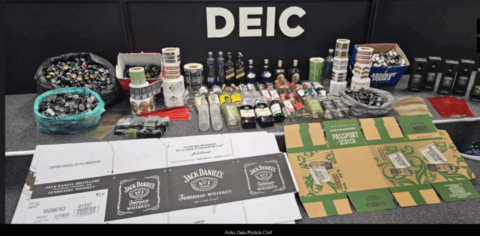 Imagens obtidas pela reportagem mostram que as garrafas apreendidas são de produtos destilados, como vodca, gim e uísque – não foram encontrados líquidos nos locais alvos da operação.