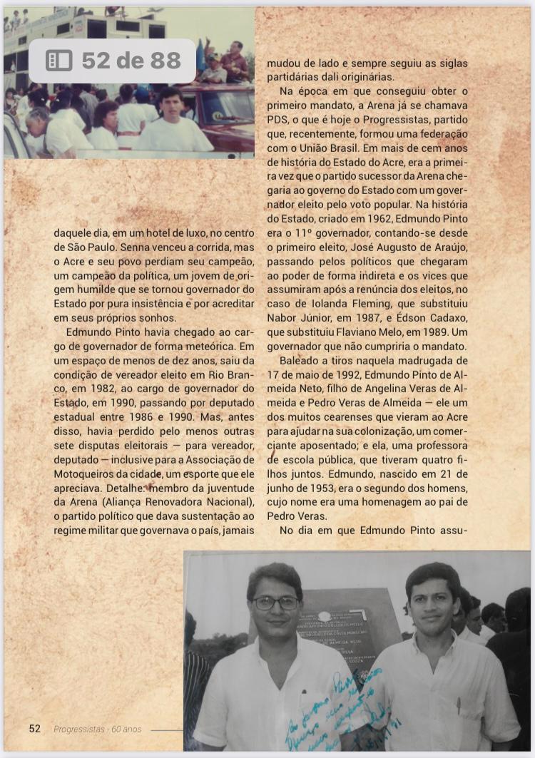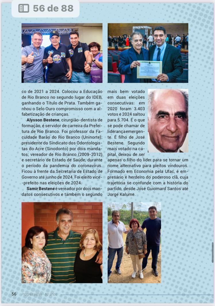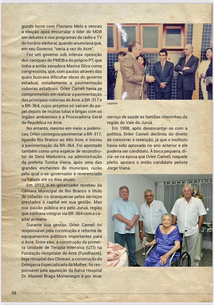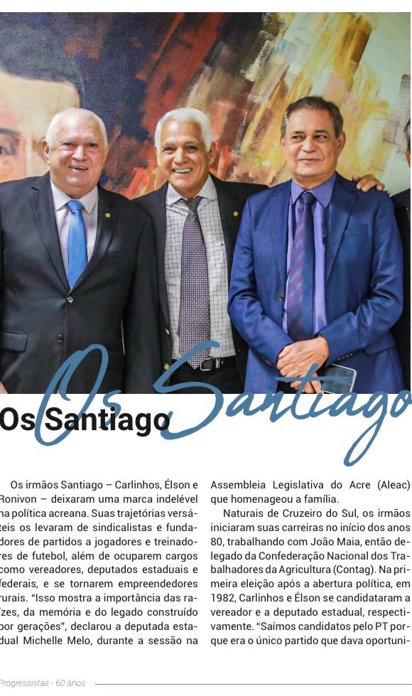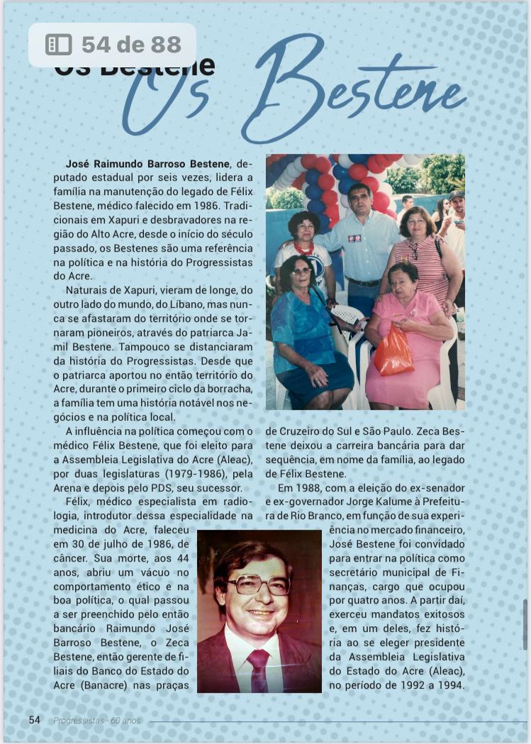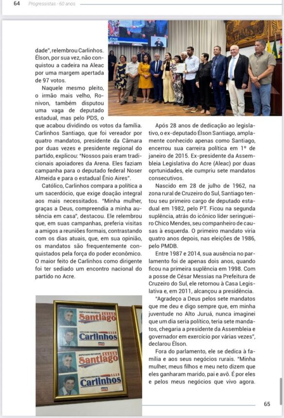 Todas as lideranças do PP, entrevistadas ontem antes, durante ou após a sessão especial em homenagem aos 60 anos de fundação da referida agremiação, afirmaram que o partido tem passado, presente e futuro. O passado foi marcado pela visão estilo de governo de Guiomard Santos, Jorge alume, ambos foram governador, senador e deputado federal. Kalume ainda teve tempo para ser prefeito de Rio Branco, o primeiro do partido a ser eleito na capital acreana. Os ex-governadores Edmundo Pinto, Romildo Magalhaes e Orleir Cameli também fazem parte do passado de glória do PP.