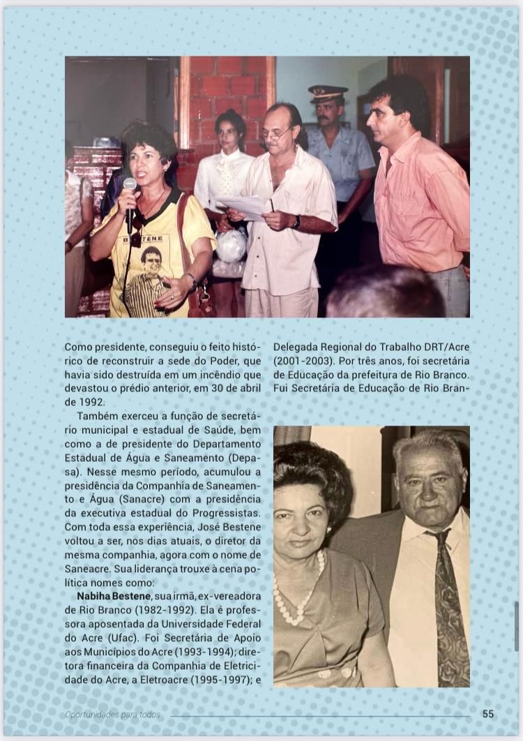 O presente é representado pelo governador Gladson Cameli, o primeiro partido a conquistar a reeleição e, portanto, ficar no governo por dois mandatos consecutivos; pelo presidente da Assembleia Legislativa do Acre (Aleac), deputado Nicolau Junior; pelo vice-prefeito de Rio Branco e secretário municipal de Educação, doutor Alysson Bestene ( primeiro-secretário da mesa diretoria da Câmara de Rio Branco, jovem vereador Felipe Tchê; pelo vereador Bruno Moraes, o mais votado em toda história de Rio Branco e autor do requerimento que resultou na sessão especial; pelo ex-deputado e ex-presidente da Aleac, José Bestene, um dos destaques da equipe vitoriada do governador Gladson Cameli.