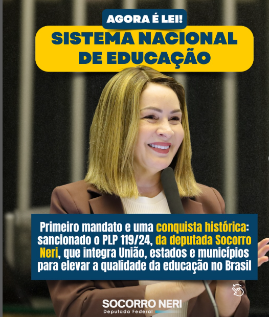 A educação brasileira deu um passo significativo rumo a uma maior integração e coordenação. O presidente Luiz Inácio Lula da Silva sancionou o Sistema Nacional de Educação (SNE), um marco celebrado pela Deputada Federal Socorro Neri (Progressistas-AC) em suas redes sociais.