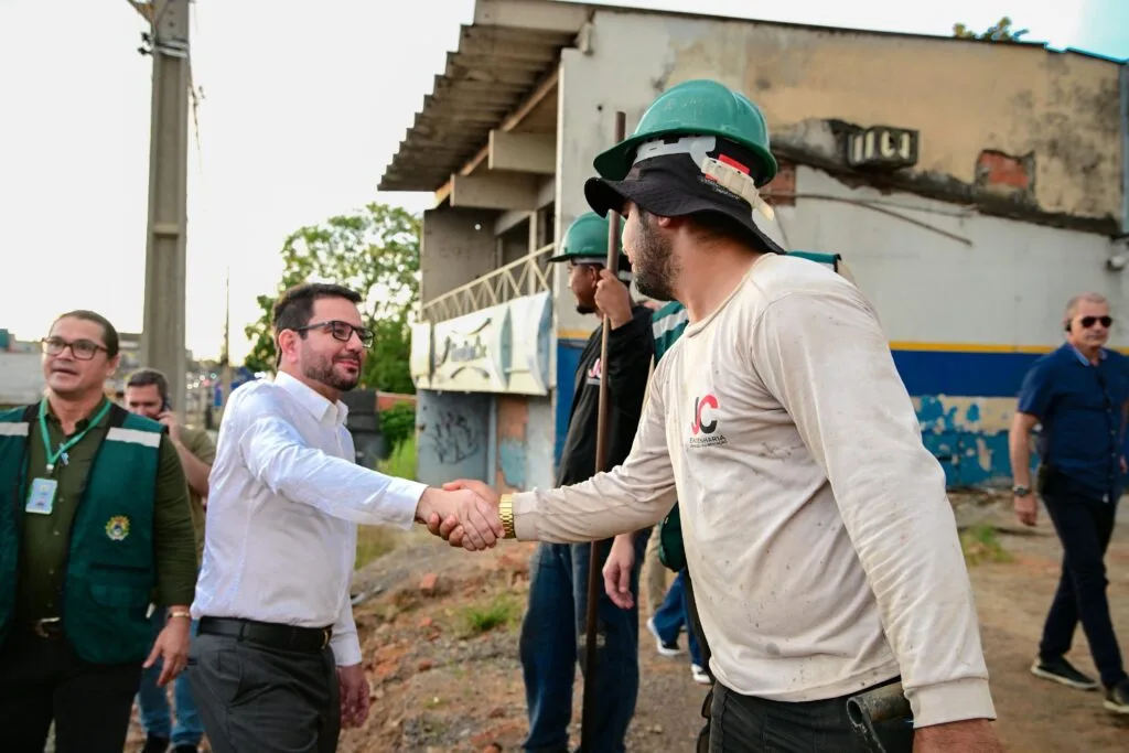 Na visita, Gladson Camelí aproveitou para cumprimentar os trabalhadores que estão atuando na obra. Foto: Clemerson Ribeiro/Secom