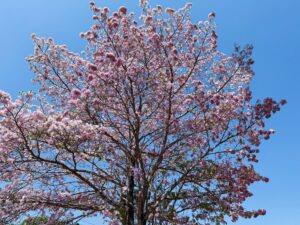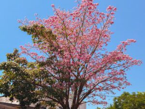 “Os ipês florescem justamente na estação seca, cada espécie em seu próprio tempo. Agora, em agosto, enchem a cidade de cores com seus tons de rosa, roxo, amarelo e, às vezes, até branco. Pertencem aos gêneros Handroanthus e Tabebuia, e sua floração segue até novembro. Além da beleza que encanta a todos, oferecem sombra e conforto térmico, atraem polinizadores como abelhas e beija-flores e tornam nossa cidade ainda mais acolhedora”, explicou Marinara Lusvardi, bióloga.