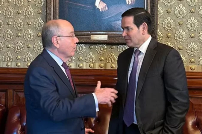 Vieira com Rubio: brasileiro ressaltou que os países têm desejo de avançar em negociações comerciais, que devem ocorrer nos próximos dias – (crédito: Embaixada do Brasil)