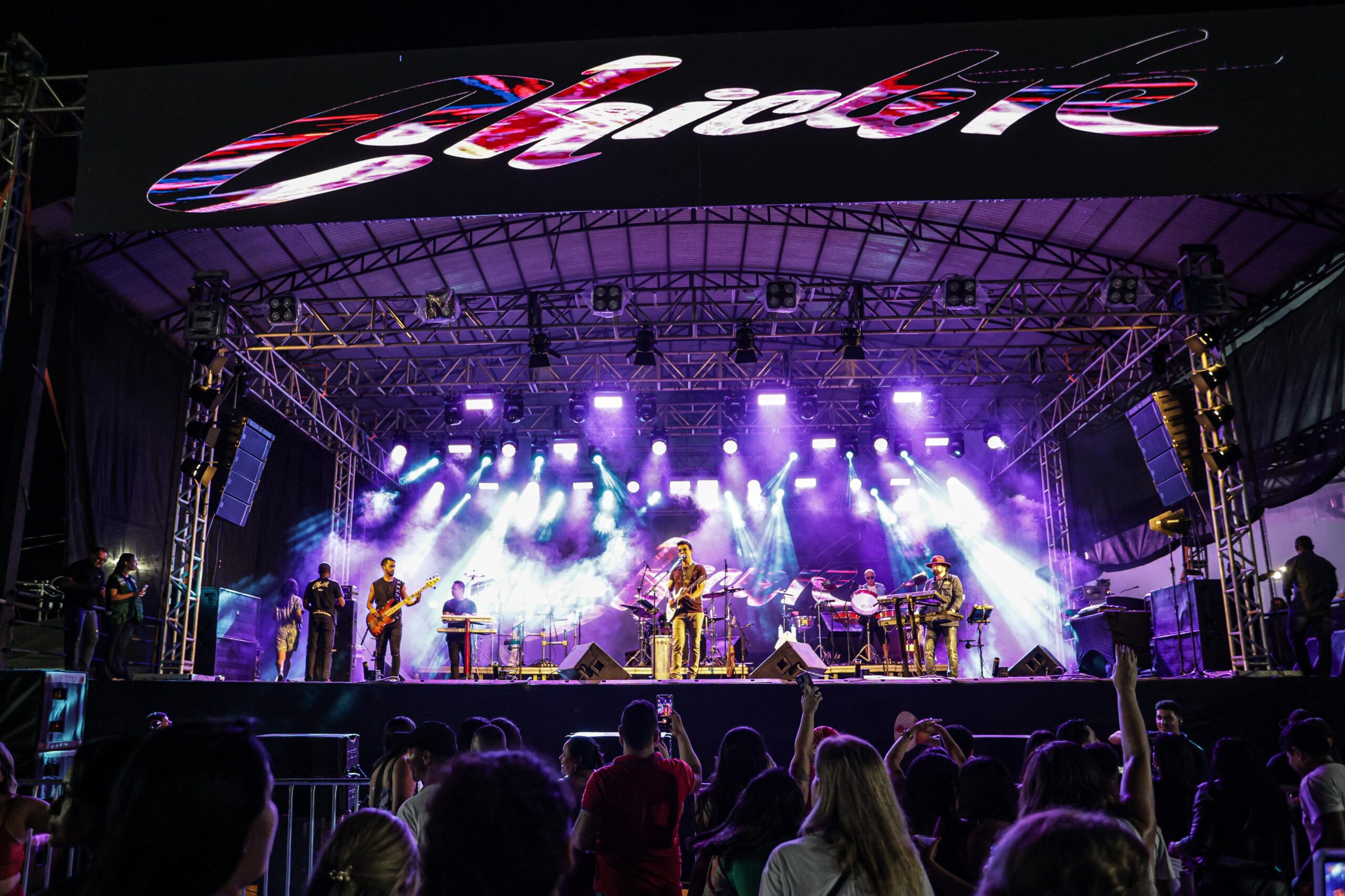 A programação da festa teve início às 20h com o DJ Richard animando o público. Às 21h, a Banda Arregaçaê subiu ao palco com um repertório contagiante, mantendo o clima de animação no alto. Após as atrações locais, o momento mais esperado da noite chegou: o show da banda Chiclete com Banana.