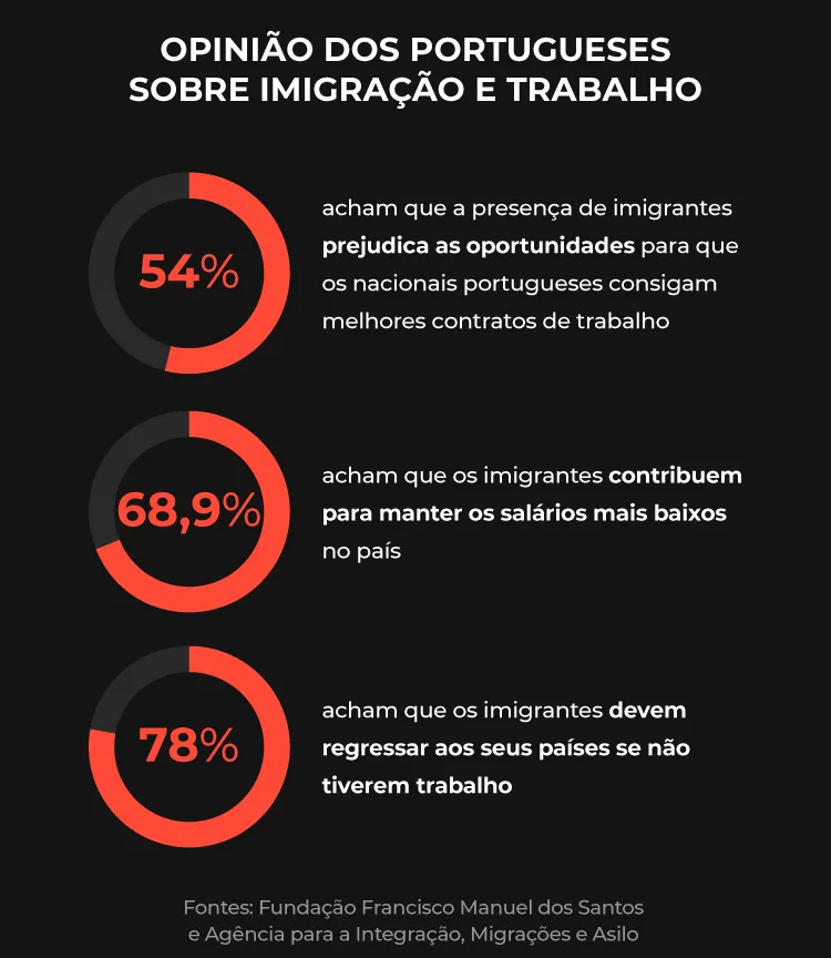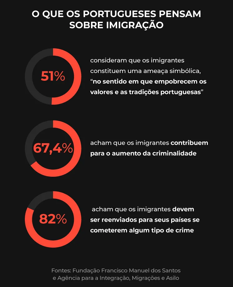 2024, mostra que 51% dos portugueses consideram os imigrantes uma ameaça aos valores e