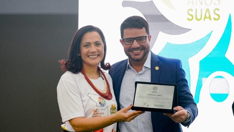A abertura no auditório da faculdade Estácio/Unimeta discutiu neste ano os “20 anos do SUAS: construção, proteção social e resistência”. O governador Gladson Camelí destacou a importância da área como eixo central das políticas públicas de seu governo. “Assistência social é vida, salva vidas e ajuda pessoas. Esse é o grande lema da nossa gestão: cuidar das pessoas. E a assistência social cumpre esse papel fundamental”, afirmou.