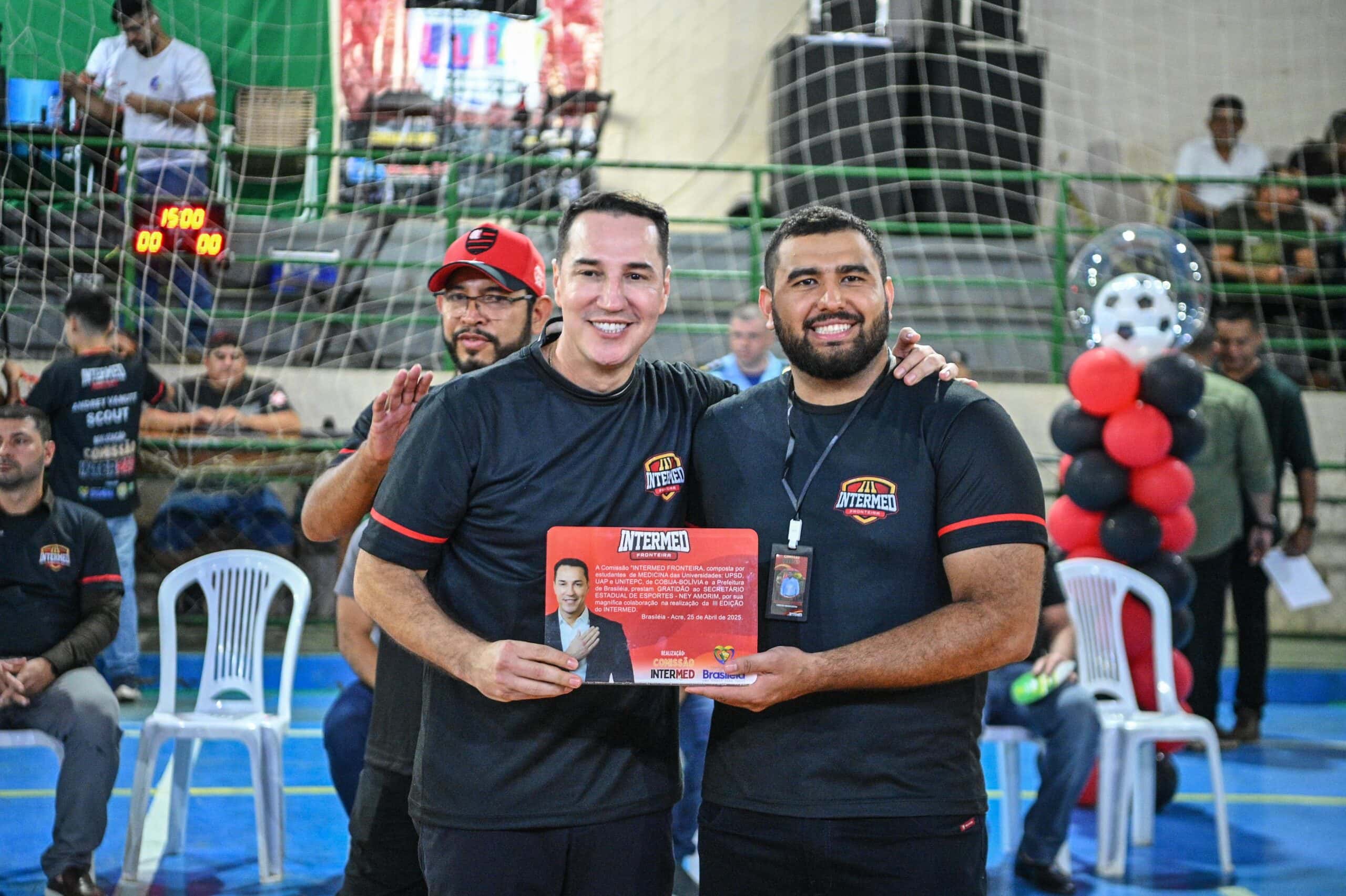Durante o evento, realizado no Ginásio Poliesportivo de Brasileia, Camelí foi homenageado pela organização e pelos participantes, em reconhecimento ao apoio dado aos estudantes brasileiros que cursam medicina na Bolívia e à valorização de iniciativas esportivas que promovem integração e desenvolvimento.