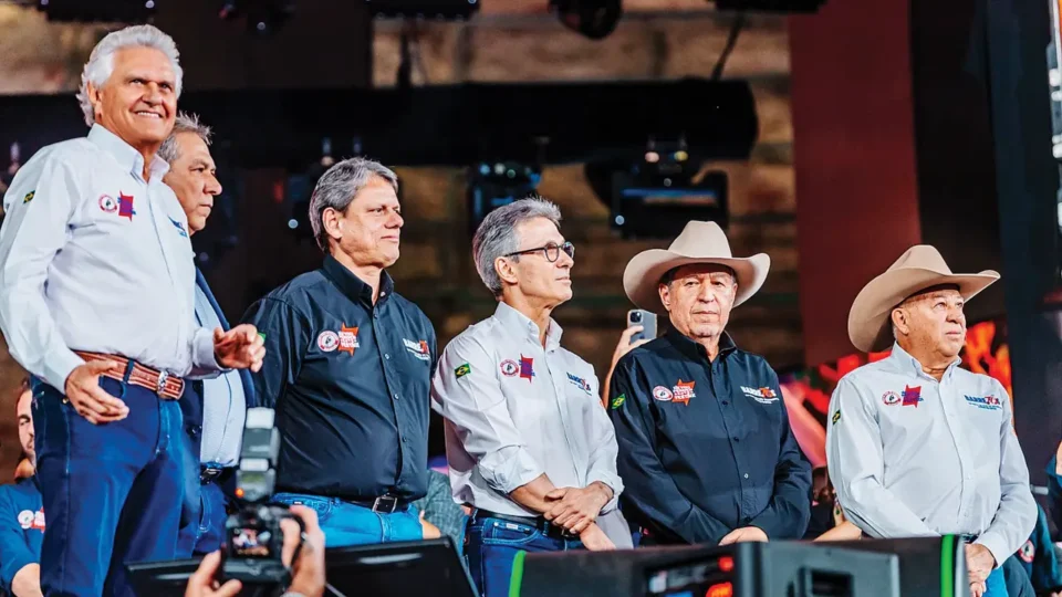 PALANQUE - Caiado, Tarcísio e Zema em Barretos: promessas de aliança no segundo turno para derrotar Lula (Alisson Demetrio/Divulgação)