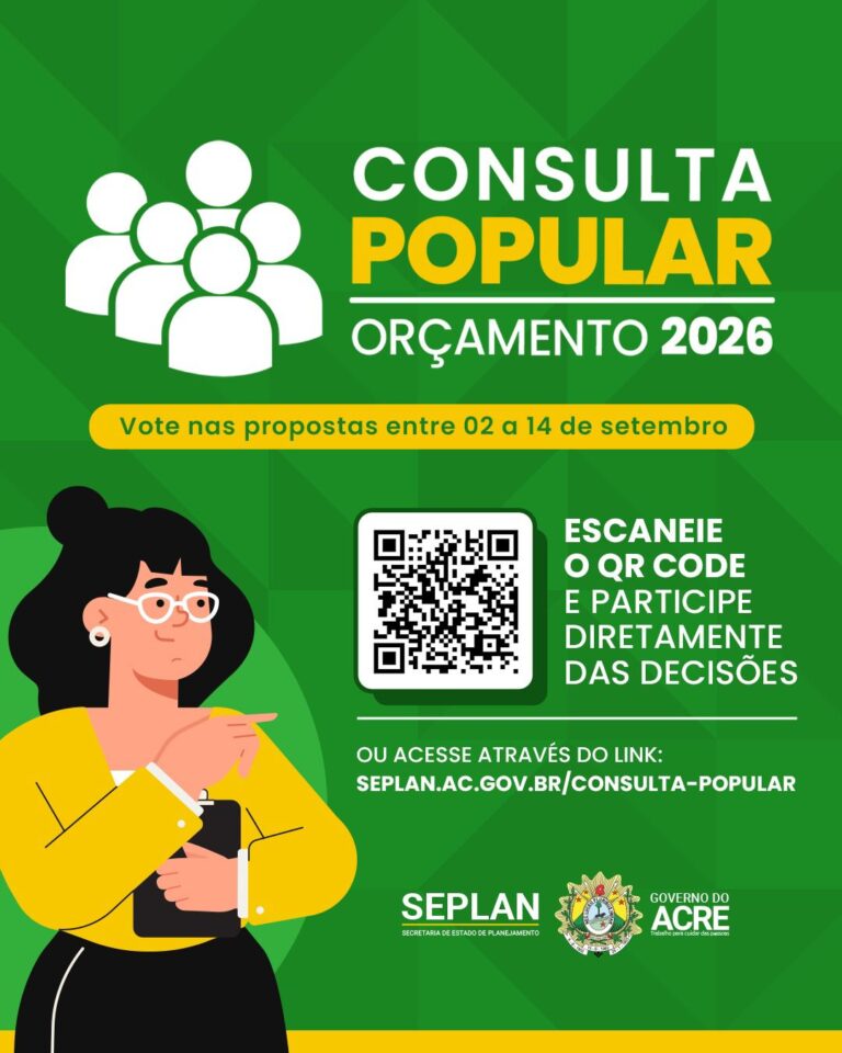 O governo do Acre, por meio da Secretaria de Estado de Planejamento (Seplan), lançou nesta terça-feira, 2, a Consulta Popular para a elaboração do projeto de Lei Orçamentária Anual de 2026 (PLOA). A iniciativa busca colocar a população no centro das decisões sobre os investimentos e serviços a serem realizados no próximo ano, permitindo que os cidadãos participem ativamente da definição das prioridades que irão nortear a aplicação dos recursos públicos.