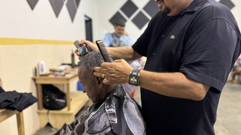 Pessoas em situação de rua receberam cortes de cabelo e serviços. Foto: Carolina Torres/Secom