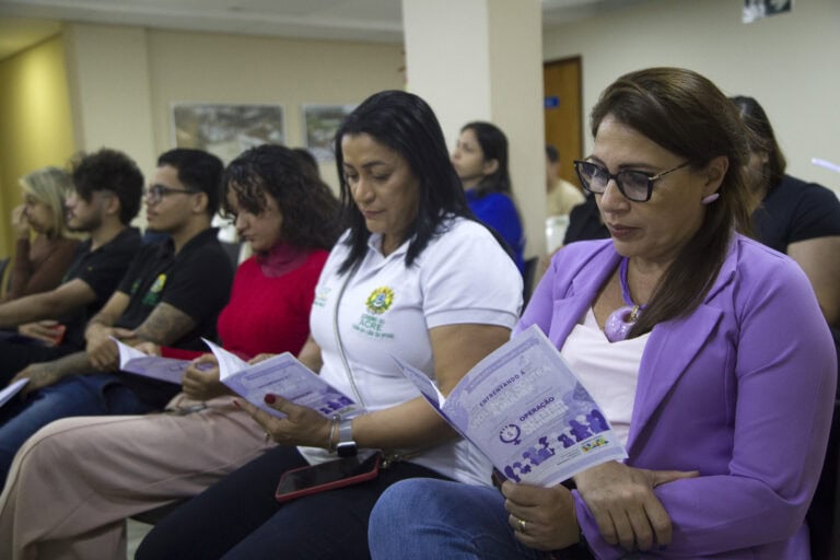 Durante a programação, o diretor operacional da Sejusp, Atahualpa Ribera, destacou a importância das ações de proteção às mulheres em todo o Brasil: “Estamos na Operação Chamar, que acontece em vários municípios, envolvendo Polícia Militar, Sejusp e Polícia Civil. Na semana passada, conseguimos efetuar prisões e libertar mulheres que viviam em situações de extrema vulnerabilidade, mesmo em locais de difícil acesso. Essa ação é muito real e acontece no nosso dia a dia, na vida de nossas famílias e vizinhos. É fundamental que o conhecimento sobre violência seja disseminado, para que possamos quebrar ciclos de agressão e fortalecer a proteção dos direitos humanos“.