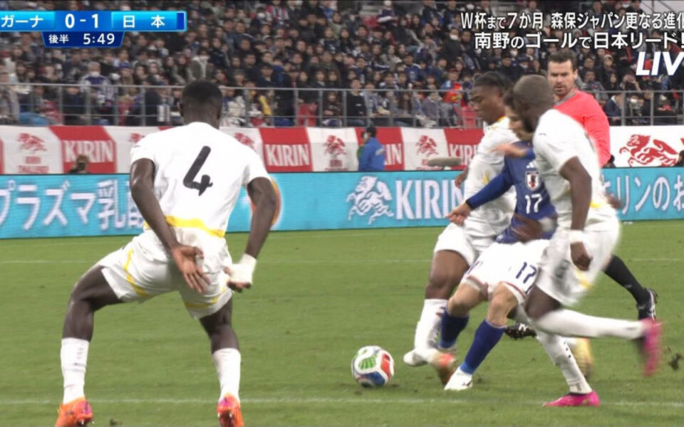 A vitória do Japão por 2 a 0 sobre Gana, na sexta-feira (14), teve um lance triste, com uma grave fratura sofrida pelo ganês Francis Abu. O jogador tentou cortar a tentativa de chute de Aoi Tanaka, mas o japonês acertou em cheio sua perna direita.