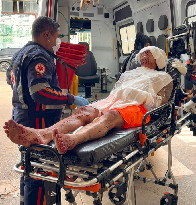 Atendimento médico A equipe de suporte avançado do Samu prestou os primeiros socorros no local. A médica responsável relatou que a vítima sofreu múltiplas perfurações na cabeça, pescoço, braços, costas e tórax. Após os procedimentos de estabilização realizados dentro da unidade prisional, o quadro clínico do detento foi considerado estável.