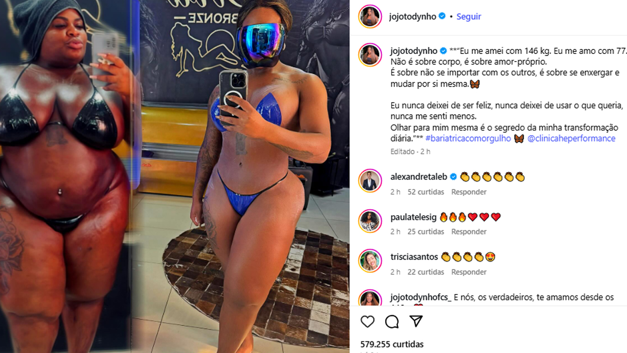 “É sobre não se importar com os outros, é sobre se enxergar e mudar por si mesma”, disse Jojo. “Eu nunca deixei de ser feliz, nunca deixei de usar o que queria, nunca me senti menos. Olhar para mim mesma é o segredo da minha transformação diária. Bariátrica com orgulho”, escreveu. Confira abaixo: