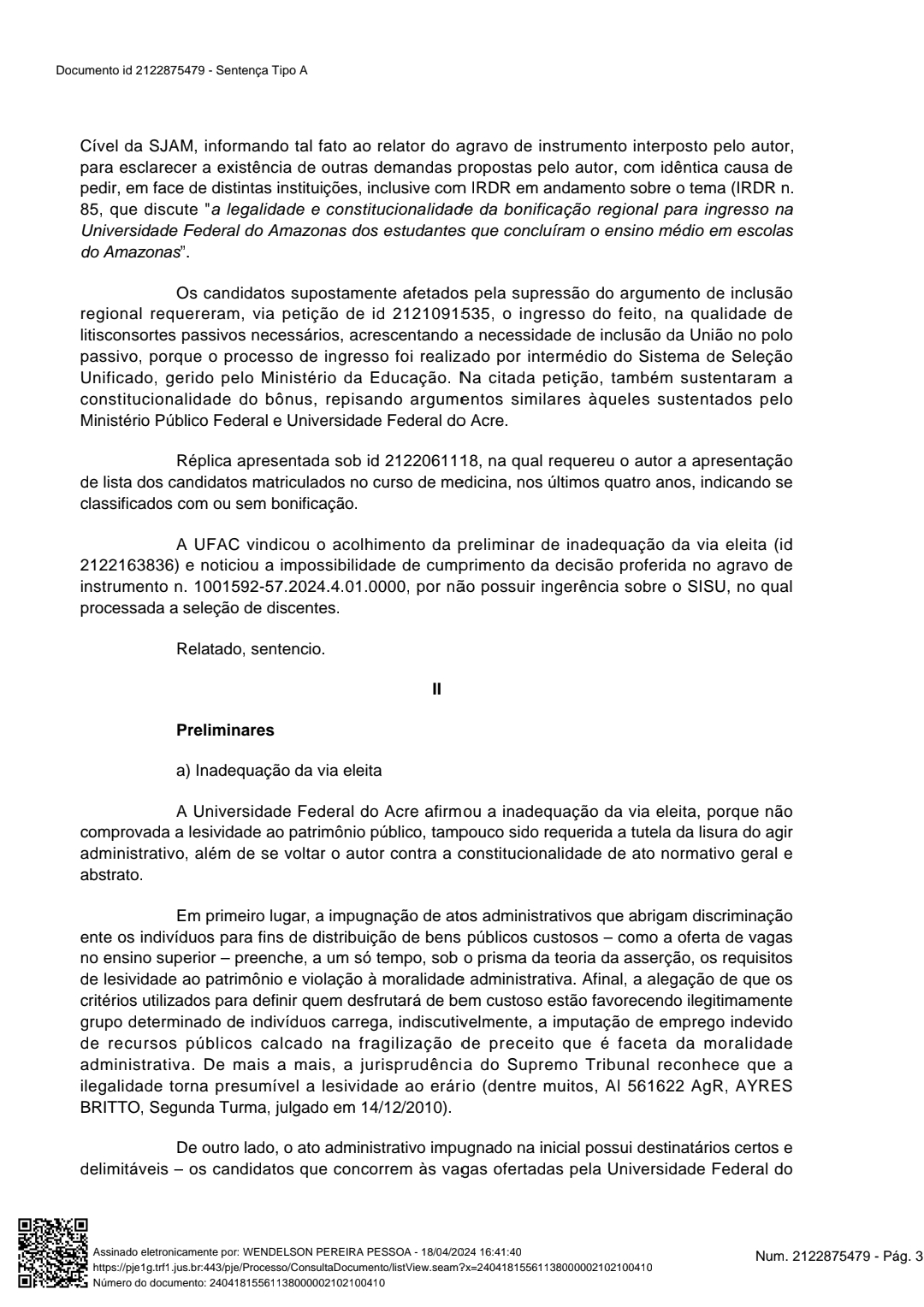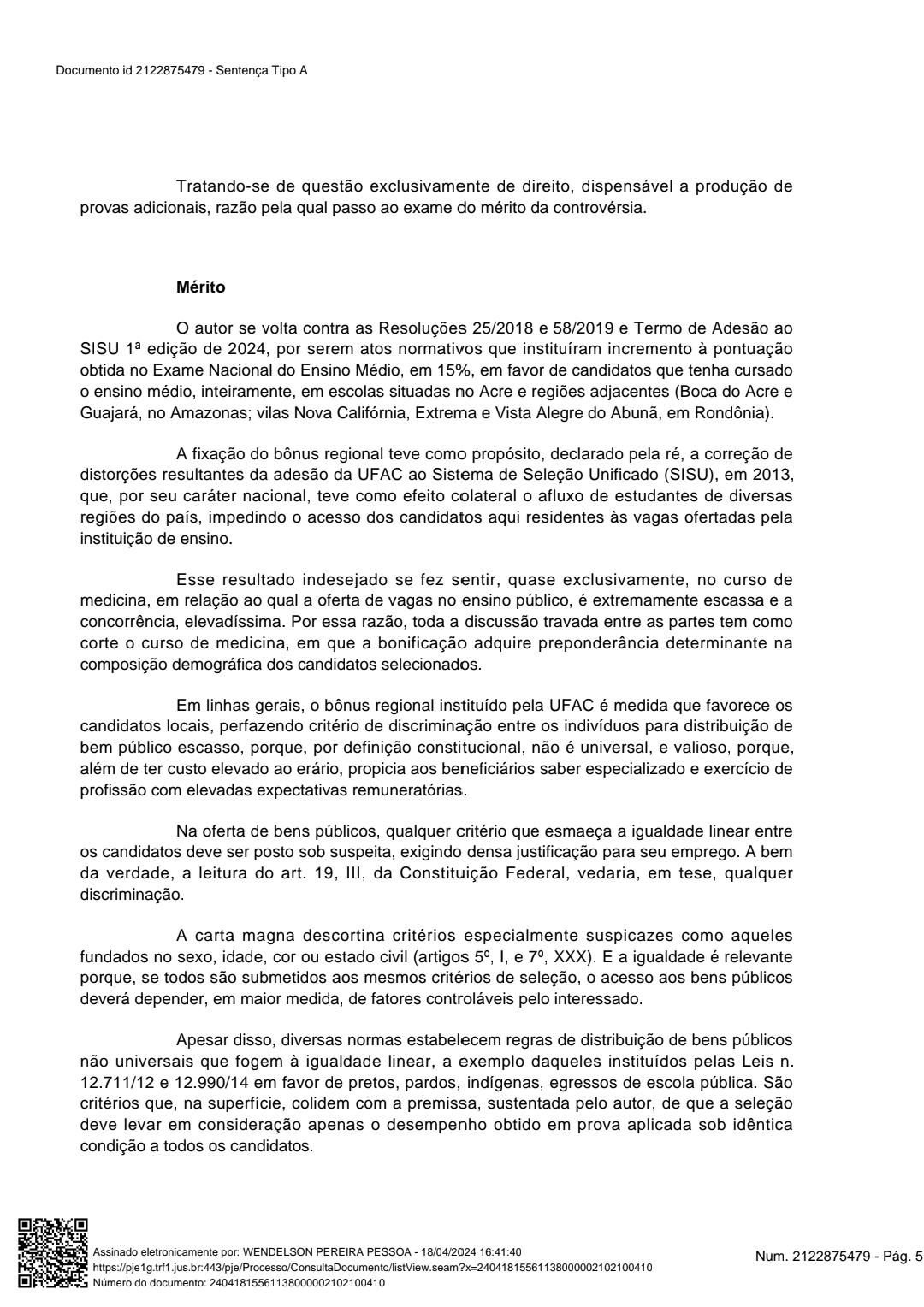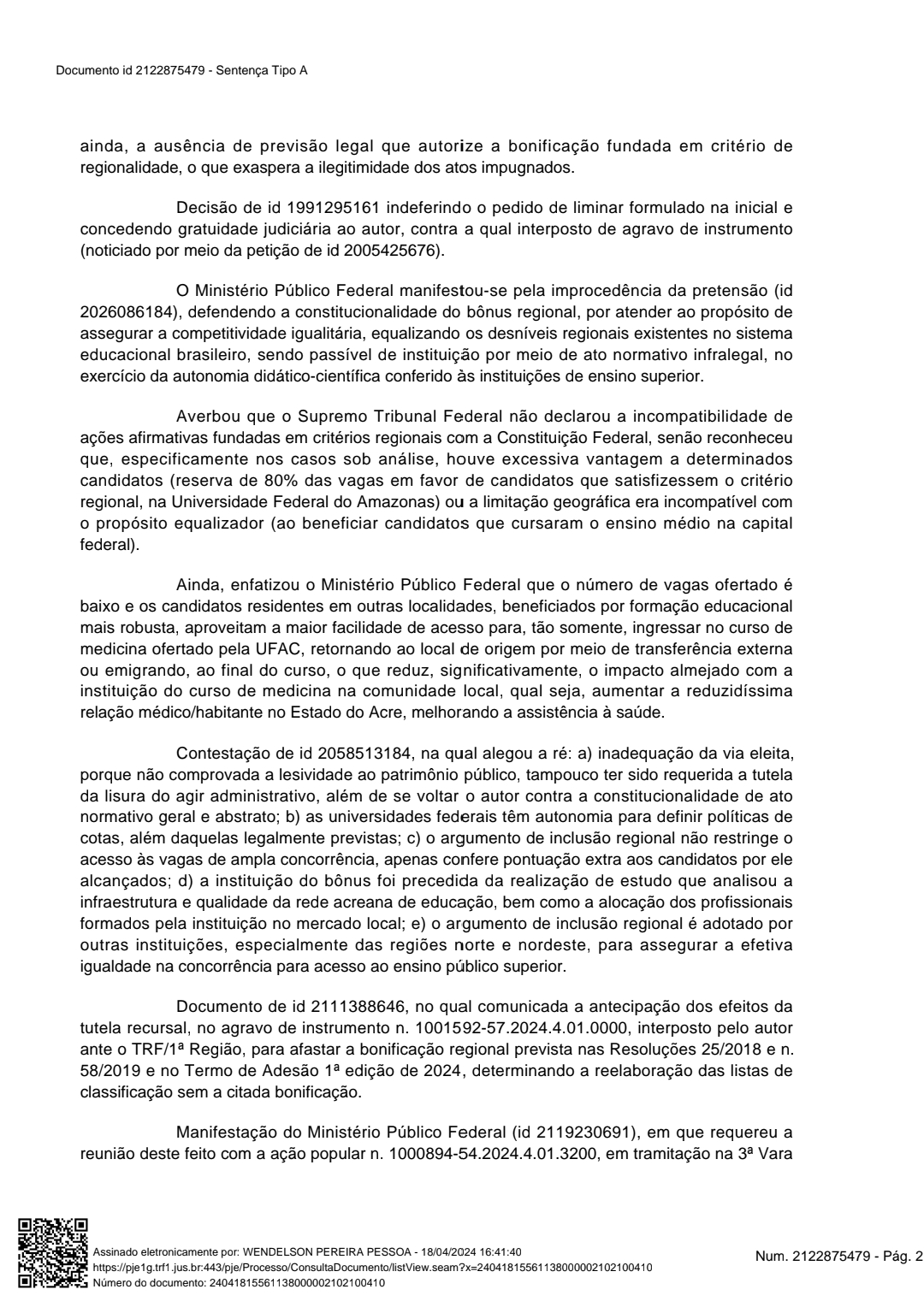 A Justiça Federal havia acatado o pedido de um candidato de medicina de outro estado, para retirar o bônus regional de 15% da Universidade Federal do Acre (Ufac), a instituição entrou com recurso e conseguiu derrubar a decisão.