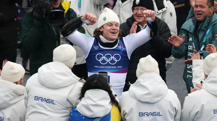 nos Jogos Olímpicos de Inverno de Milão-Cortina. O brasileiro — ouro no slalom gigante