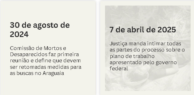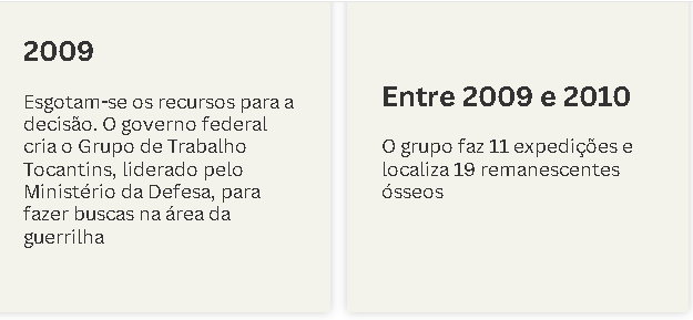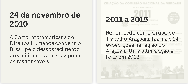 O caso se arrasta. O governo federal foi condenado em 2003 a auxiliar os familiares a