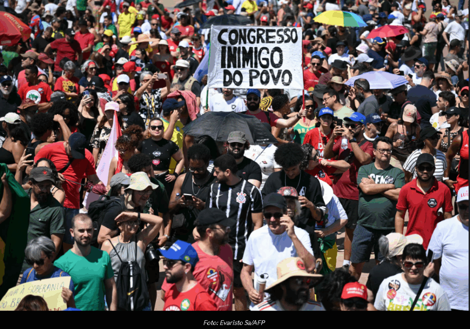 Os manifestantes carregam faixas com dizeres como “Congresso inimigo do povo”, “sem perdão para golpistas” e “sem anistia”. Um dos participantes do ato estimou, do caminhão de som, a presença de 30 mil pessoas. As forças de segurança pública ainda não lançaram estimativa de público.