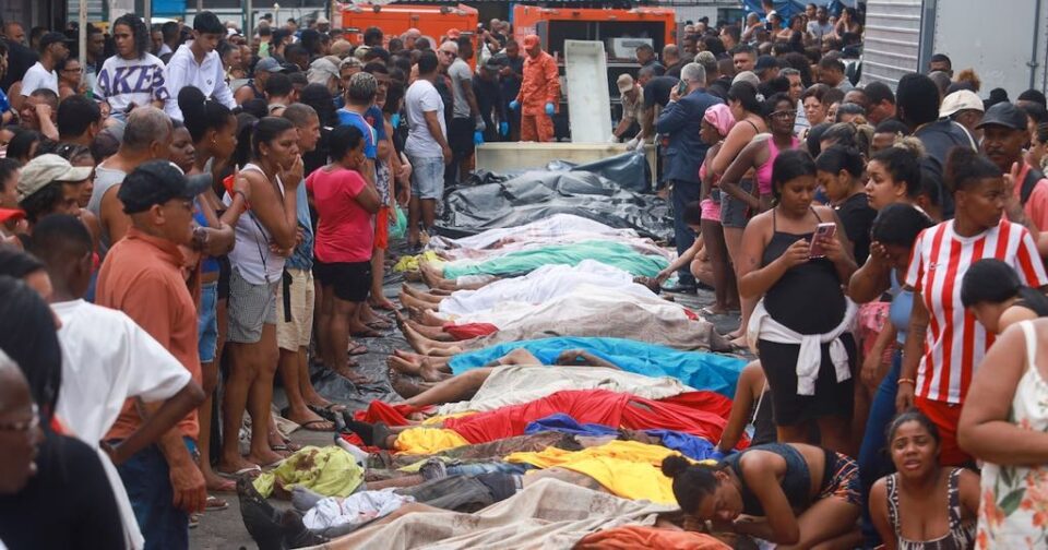 Rio de Janeiro tem fila de corpos estendidos em uma lona após megaoperação