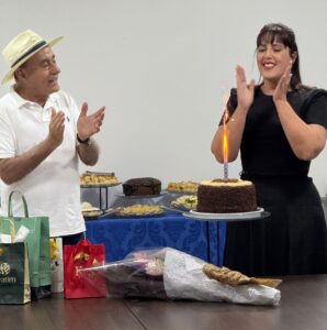 À tarde, servidores da prefeitura fizeram uma bela surpresa com direito a bolo e tudoooo que ela tem direito.