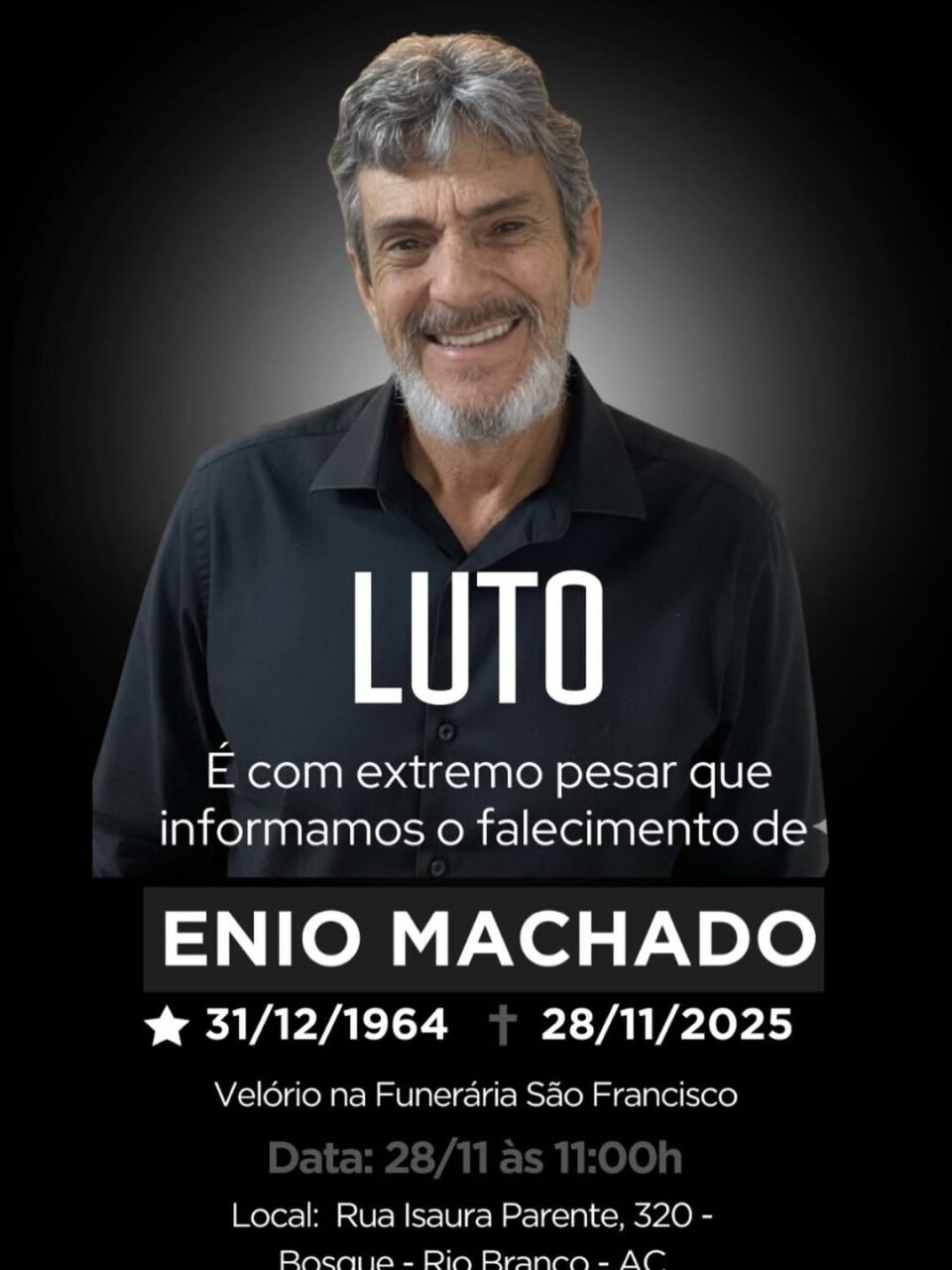 É com profundo pesar que o O Rio Branco registra o falecimento do querido amigo Enio Machado, ocorrido nesta quinta-feira, 28 de novembro.