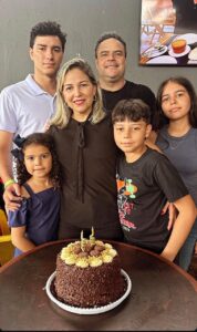Vivas para Ana Valéria Souza pela chegada de mais uma primavera! Na foto, cantando os parabéns ao lado do marido Júnior e dos filhos!