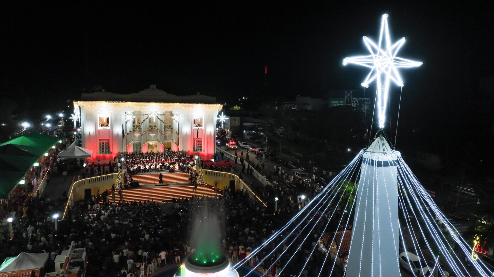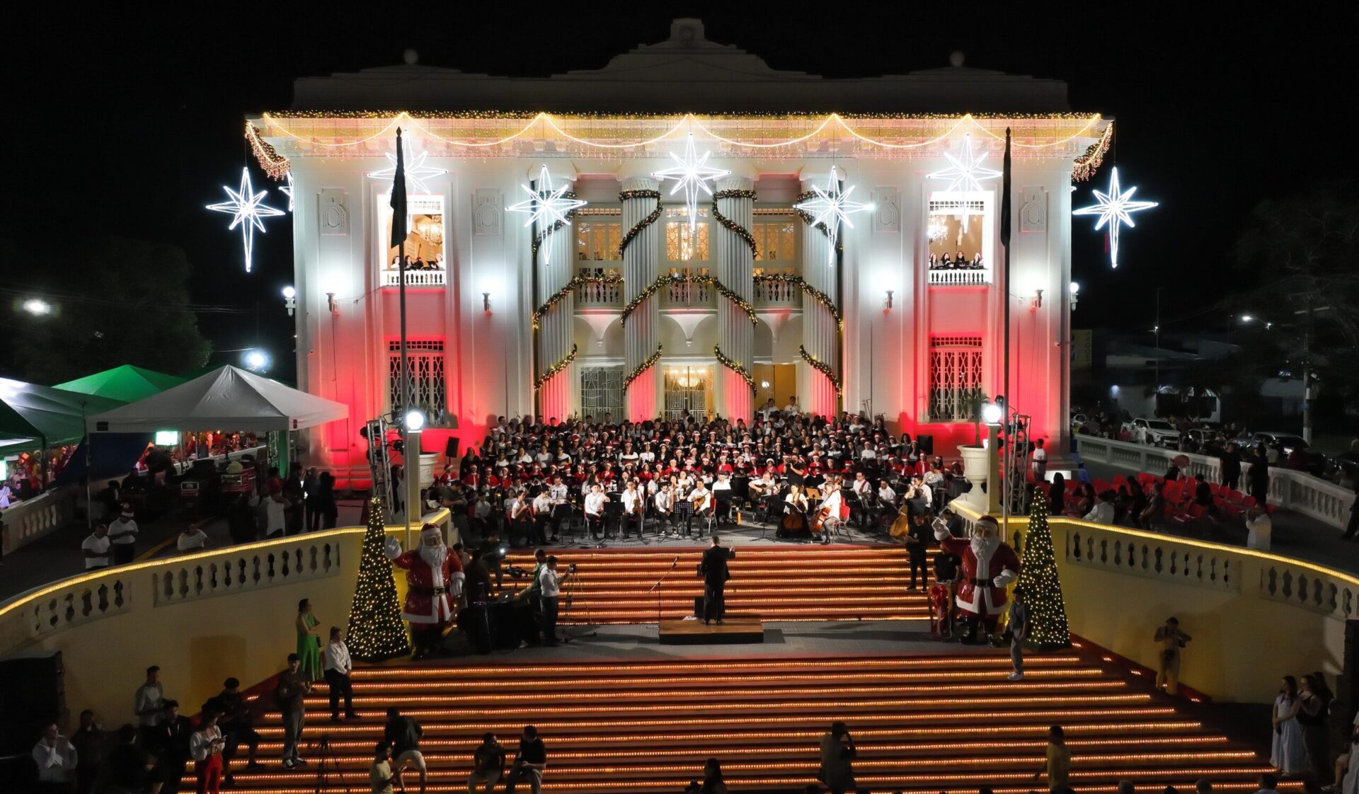 A noite de domingo (7) marcou o início oficial da programação natalina em Rio Branco com um evento que uniu arte, fé e tradição: a Cantata de Natal. O espetáculo, realizado em frente ao icônico Palácio Rio Branco, seguiu-se imediatamente ao acender das luzes que transformam a fachada do prédio em um cartão-postal festivo.