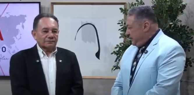 Foto: Apresentador e jornalista José Alex e o entrevistado Jesse Tavares Leitão