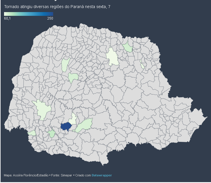 Na escala, de 0 a 4, que mede a intensidade dos tornados, o temporal desta sexta, 7, foi classificado como F2, classe daqueles que os ventos chegam a até 250 km/h. Simepar investiga possibilidade das rajadas terem ultrapassado tal velocidade