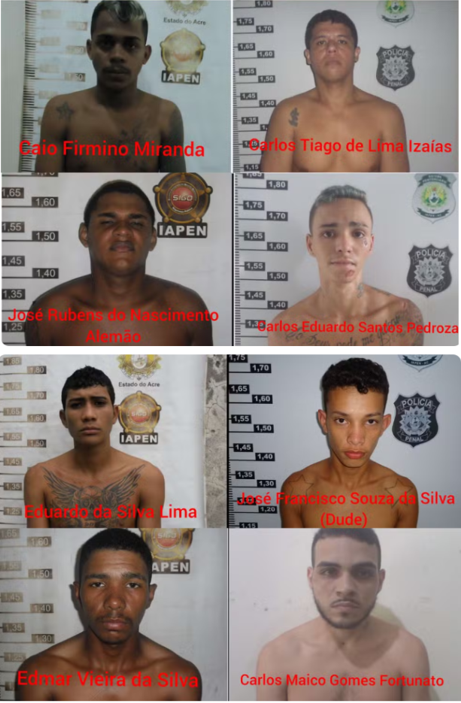 O governo do Acre, por meio do Instituto de Administração Penitenciária do Acre (Iapen), informa a fuga de 8 presos do Presídio Manoel Neri da Silva, bloco 7, cela 725, em Cruzeiro do Sul.