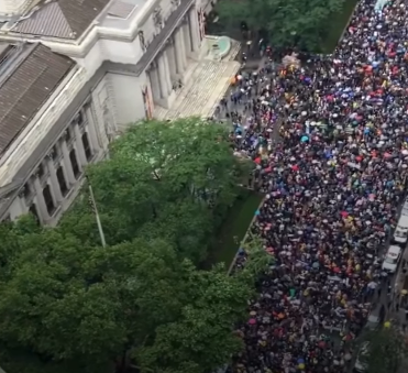 As manifestações ocorreram no mesmo dia em que o chefe de Estado presidiu desfile militar na capital do país, do qual participaram cerca de 7 mil militares, 150 veículos militares e 50 aviões.