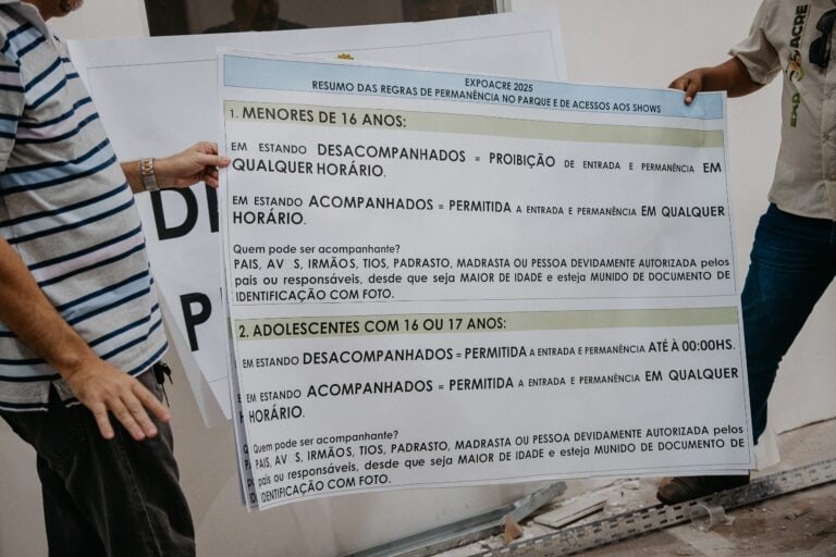 O governo do Estado, em parceria com o Tribunal de Justiça do Acre (TJAC), tem intensificado os esforços para fiscalizar as regras de acesso e permanência de crianças e adolescentes no Parque de Exposições Wildy Viana, durante a 50ª edição da Expoacre, que começa neste sábado, 25.
